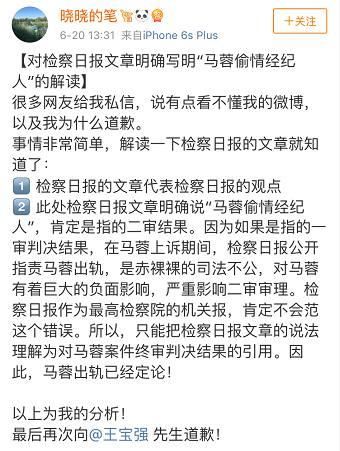 随后她又发了一篇文章公开致歉王宝强,表示检察日报在二审之后发表的,肯定是有二审的结果否则也不会这样明确说“马蓉偷情经纪人”,连一直力挺马蓉的好友也倒戈认怂,不知道接下来马蓉会做出什么样的反击,她还会那么高调吗?