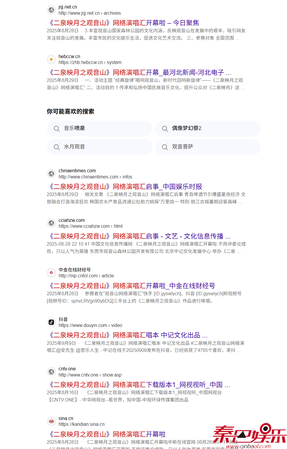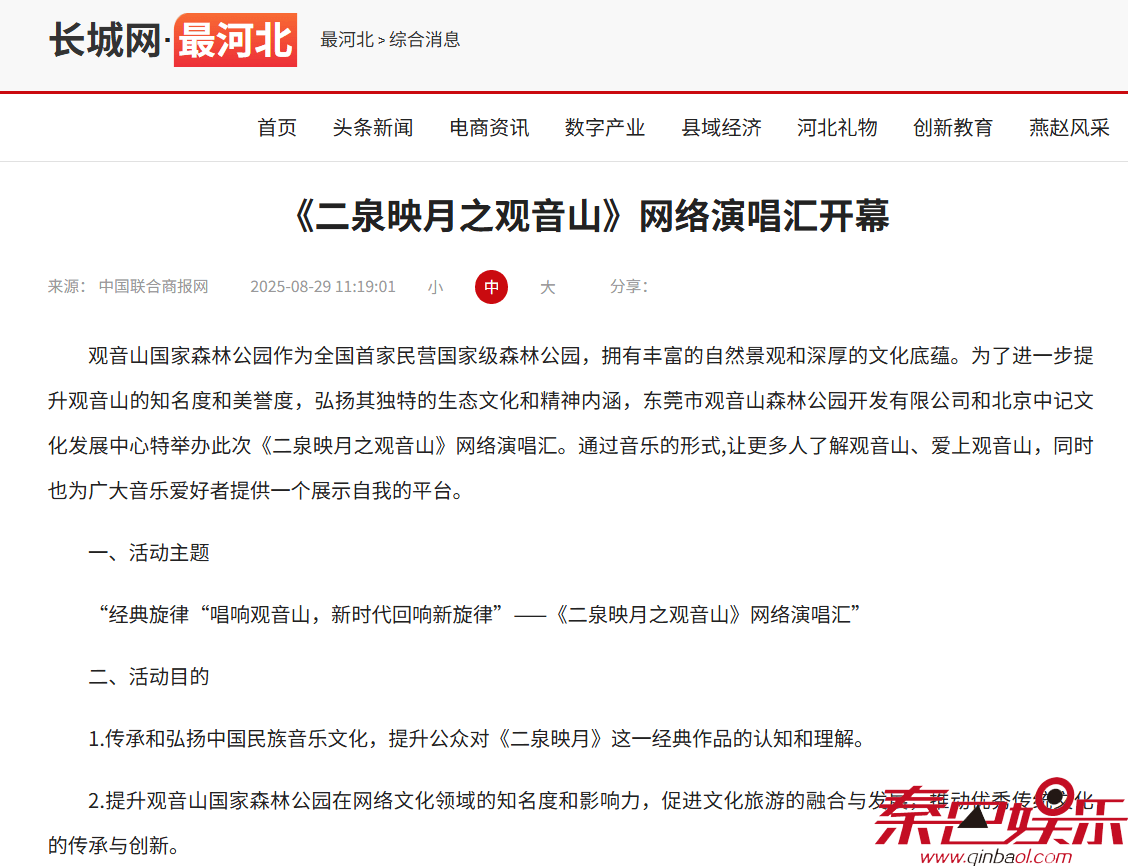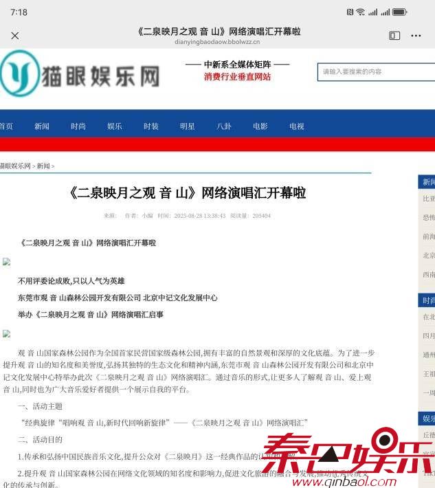 8月28日,“《二泉映月之观音山》网络演唱汇开幕啦”的消息见诸网络,包括《中国联合商报》、《长城网》、《中国娱乐时报》、《娱乐最前沿》等近千个网站。