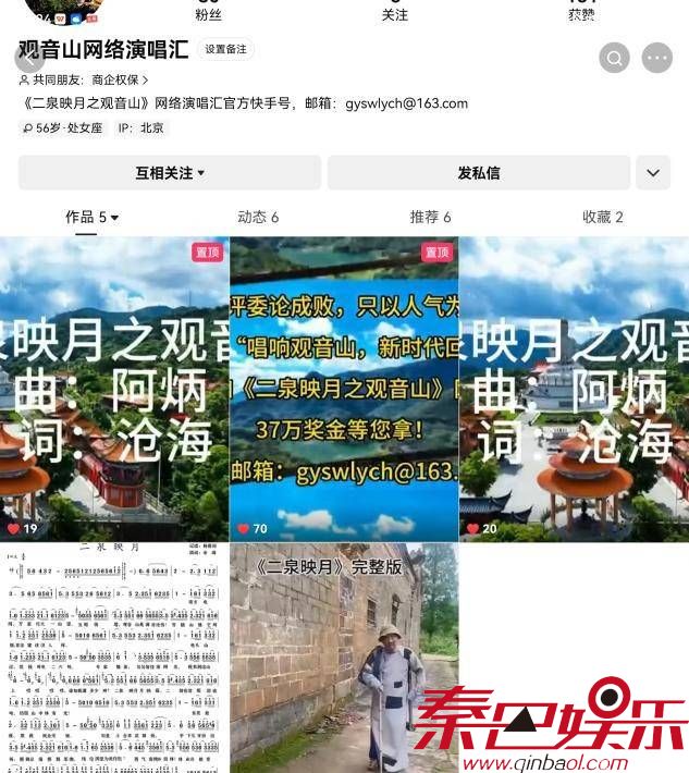 《二泉映月之观音山》是由沧海作词,采用阿炳的二胡乐曲制作的卡拉OK形似的视频在抖音、快手、视频号平台播放,吸引音乐爱好者进行演唱。广东观音山国家森林公园和北京中记文化发展中心联合举办的“《二泉映月之观音山》网络演唱汇”设置了冠军、亚军、季军各一名和10名优秀奖,举办方拿出了37万元奖金和多份观音山门票进行奖励。