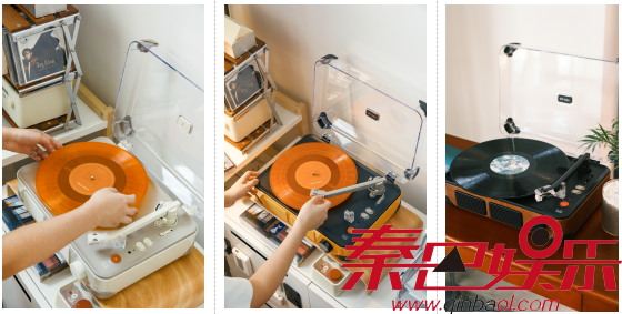 经典白、芝士黄与木纹款三种配色,从简约到个性,适配不同生活空间与审美偏好。T400没有复刻传统唱机的复古造型,而是以更年轻、更当代的设计语言,让唱机自然融入书桌、宿舍或生活空间之中。